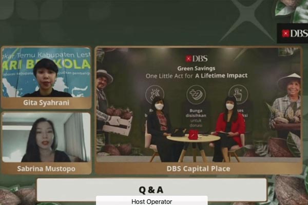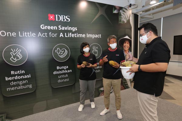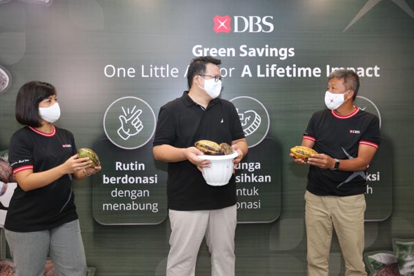 Head of Segmentation, Liabilities and Mortgage PT Bank DBS Indonesia, Festia Pisa Valensia, CMO of Krakakoa, Yohan Christian, dan Consumer Banking Director PT Bank DBS Indonesia, Rudy Tandjung berbincang saat acara peluncuran Green Savings, di Jakarta, Jumat, 4 Juni 2021. Bank DBS Indonesia meluncurkan produk Green Savings yang memberikan kemudahan bagi nasabah untuk menabung sekaligus memberikan kontribusi sosial kepada wirausaha sosial, Krakakoa. Produk ini melanjutkan komitmen Bank DBS Indonesia dalam membangun masyarakat berkelanjutan dan kelestarian lingkungan.