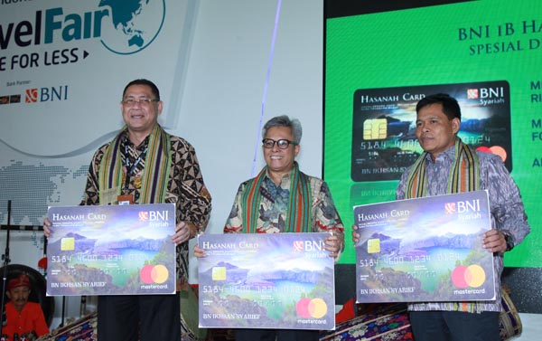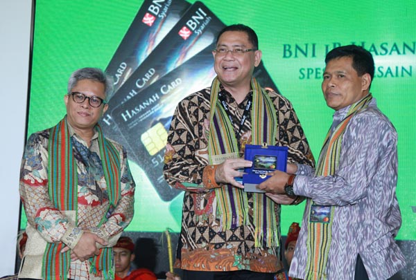 Plt. Direktur Utama BNI Syariah, Abdullah Firman Wibowo (kiri) dan Kepala Dinas Pariwisata NTB, Lalu Mohammad Faozal (kanan) dalam peluncuran Kartu BNI IB Hasanah Card Special Design Lombok di Jakarta 22 September 2017. BNI iB Hasanah Card memberikan kemudahan bagi nasabah untuk memberikan penawaran edisi spesial disain lombok akan mendapatkan benefit berupa cashback 10% hingga 500 ribu untuk paket wisata halal BNI Syariah bersama ESQ Tours Travel. (*) Erman
