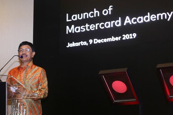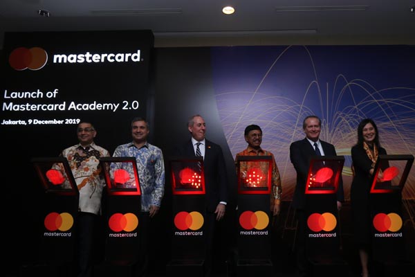 Division President for Indonesia, Malaysia and Brunei Safdar Khan, Mastercard Co-President for Asia Pacific Ari Sarker, Mastercard Vice Chairman and President Strategic Growth Mike Froman, Menteri Komunikasi dan Informatika Republik Indonesia Johnny G. Plate, Acting Deputy Chief of Mission, US Embassy in Indonesia James Dayringer, Vice President Center for Inclusive Growth, Strategic Growth Mastercard Alison Eskesen (kiri ke kanan) berbincang disela acara peluncuran Mastercard Academy 2.0 di Jakarta, Senin, 9 Desember 2019. Mastercard meluncurkan Mastercard Academy 2.0, sebuah flagship program yang dirancang untuk memberikan pengetahuan serta keterampilan digital kepada berbagai segmen masyarakat Indonesia. Program ini diharapkan dapat membekali 100.000 masyarakat Indonesia. Dengan keterampilan digital diharapkan dapat mendukung secara aktif dan berpartisipasi dalam perjalanan transformasi digital Indonesia sampai tahun 2022.