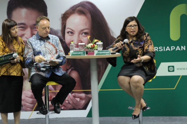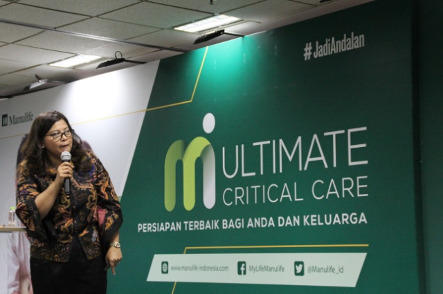Direktur & Chief Marketing Officer Manulife Indonesia,Novita Rumngangun (kiri) dan Chief Distribution Officer Manulife Indonesia bersama meluncurkan MiUltimate Critical Care di Jakarta,Selasa 25 Juli 2017.Manulife Indonesia mengumumkan peluncuran MiUltimate Critical Care,asuransi penyakit kritis murni pertamanya,yang melindungi nasabah dari konsekuensi finansial yang muncul akibat penyakit kritis.Dengan masa pembayaran premi 5 tahun proteksi selama 20 tahun dan 160% pengembalian premi yang telah dibayarkan pada akhir periode.Produk ini membuat nasabah tenang dan menikmati hidup.(Budi Urtadi)