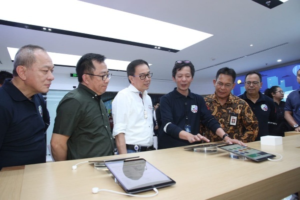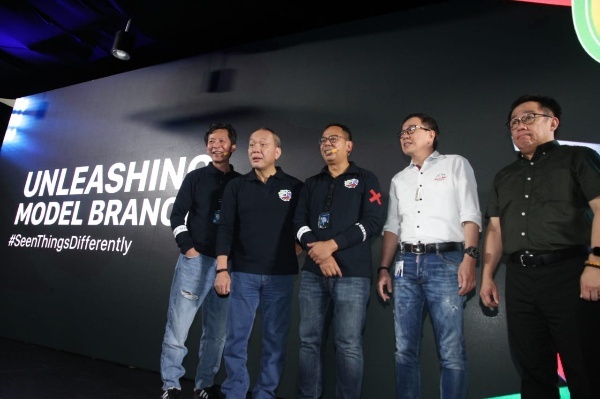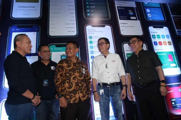 Adief Razali, Direktur Pengawasan Bank 2 Otoritas Jasa Keuangan (kedua kanan) didampingi Prijono Sugiarto, Presiden Direktur Astra (ketiga kanan), Djony Bunarto Tjondro, Wakil Presiden Direktur Astra (kedua kiri), Suparno Djasmin, Direktur Astra dan Director in Charge Astra Financial (kiri), Ridha DM Wirakusumah, Direktur Utama PermataBank (kanan), dan Abdy Salimin, Direktur Teknologi dan Operasional PermataBank berbincang bersama seusai meluncurkan website baru dan model branch PertamaBank di Menara Astra pada hari ini, Jumat (20/9). (*(