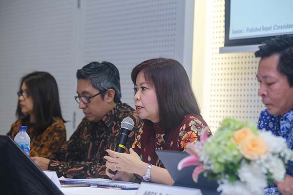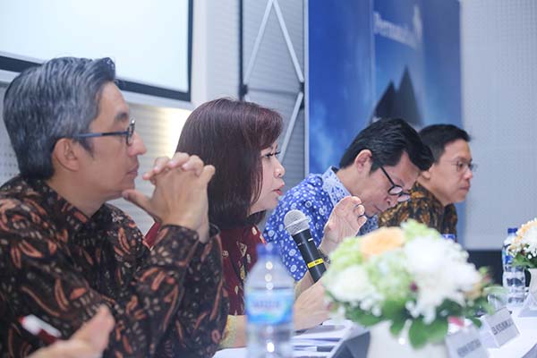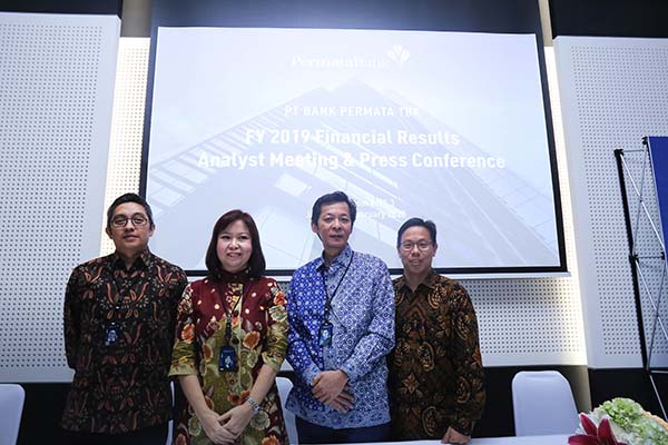 Direktur Unit Usaha Syariah Herwin Bustaman, Direktur Keuangan Lea Setianti Kusumawijaya, Direktur Teknologi dan Operasi Abdy Dharma Salimin dan Direktur Wholesale Banking Darwin Wibowo (kiri ke kanan) melakukan sesi foto bersama setelah memberikan pemaparan kinerja periode 2019 di Jakarta, Rabu, 19 Februari 2020. PT Bank Permata Tbk (PermataBank) mengumumkan laporan kinerja keuangan sepanjang tahun 2019 yang menunjukkan perbaikan secara signifikan, ditandai dengan pertumbuhan laba bersih setelah pajak sebesar 66,5% menjadi Rp1,5 triliun dan penurunan rasio Non-Performing Loan (NPL) dari 4,4% di akhir tahun 2018 menjadi 2,8% di akhir tahun 2019, membuktikan keberhasilan PermataBank dalam meningkatkan profitabilitas yang ditopang pendapatan usaha serta kualitas aset yang terus membaik.