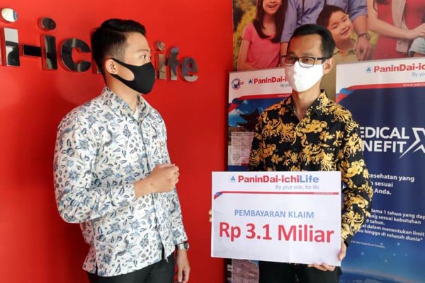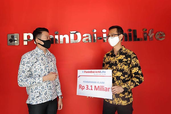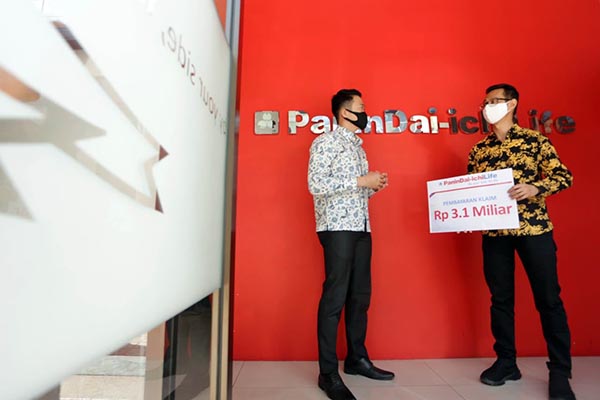 Business Development Manager PT Panin Dai-ichi Life Ronny Wiyanto (kiri) berbincang dengan Pemilik Kantor General Agency Mitra Makmur Mandiri Medan Hery Ruslianto Putra saat serah terima klaim mewakili keluarga salah satu nasabah di Medan Sumatera Utara, Jumat 8 Mei 2020. Panin Dai-ichi Life melakukan pembayaran klaim nasabah di Medan Sumatera Utara, sebesar Rp 3,1 miliar. Pembayaran klaim ini merupakan manfaat dari produk Panin New Multilinked dan Panin Tuntas Madani.