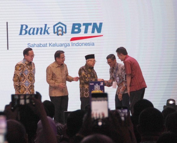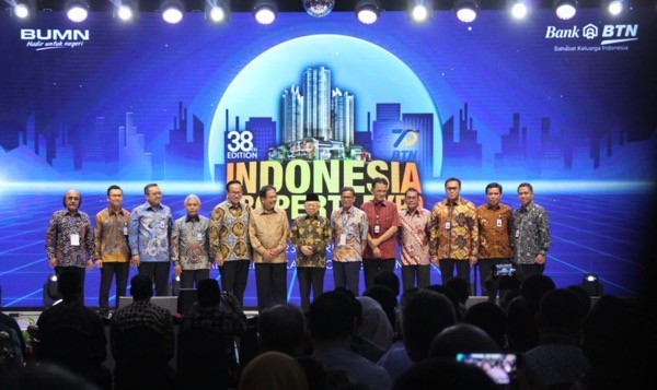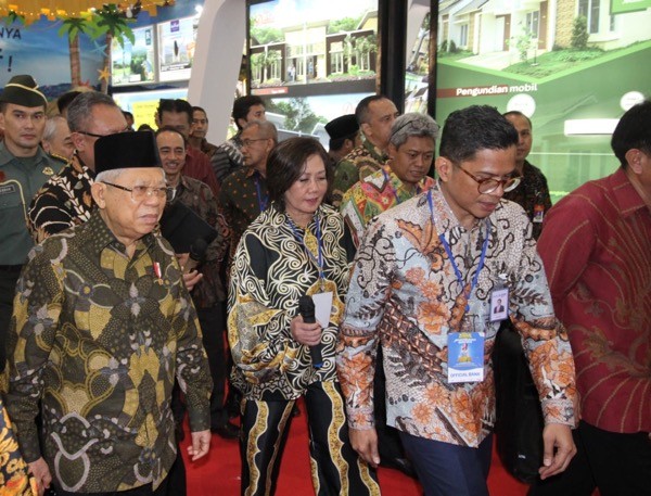 Wakil Presiden RI KH Ma’ruf Amin bersama Direktur Utama BTN Pahala N Mansury (tengah), Komisaris Utama BTN Chandra M. Hamzah (kanan), Menteri ATR Sofyan A Djalil (kedua kiri) dan Wakil Menteri BUMN Kartika Wirjoatmojo (kiri) memencet tombol tanda dibukanya Indonesia Property Expo (IPEX) 2020 di Jakarta, Sabtu (15/2). BTN menargetkan transaksi dalam IPEX 2020 yang berlangsung dari tanggal 15 sampai dengan 23 Februari 2020 bakal mencapai Rp3 Triliun. Perseroan optimis sektor properti yang dikenal memiliki multiplier effect ke 170 industri turunan akan bertahan di tengah isu politik mancanegara dan virus corona. BTN akan terus memberikan dukungan dalam program sejuta rumah yang diinisiasi Presiden Jokowi sejak 2015 lalu. (*)