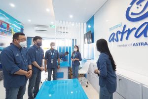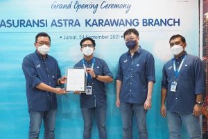 CEO Asuransi Astra Rudy Chen (kedua kiri) didampingi Chief Marketing Officer – Retail Business Asuransi Astra Gunawan Salim (kiri) dan Branch Head Asuransi Astra Karawang Kevin Adichandra Leman (tengah) sedang menyapa frontliner di Kantor Cabang Karawang saat peresmian kantor cabang baru Asuransi Astra di Karawang, Jawa Barat, pekan lalu. Pembukaan kantor cabang barunya di Karawang tersebut sejalan dengan meningkatnya jumlah pelanggan di wilayan tersebut. Layanan di kantor cabang Asuransi Astra Karawang sudah terintegrasi secara digital. Salah satunya Garda Mobile Otocare yang didalamnya terdapat berbagai macam fitur menarik yang tentu berguna dan dapat menjadi solusi melengkapi kebutuhan para pelanggan.