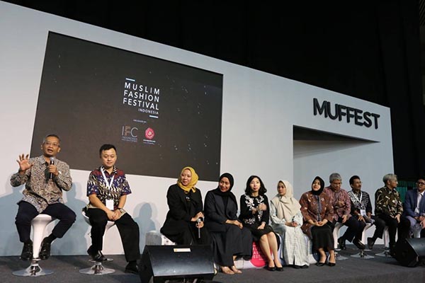 Pemimpin Divisi Kesekretariatan dan Komunikasi Perusahaan BNI Syariah, Bambang Sutrisno, National Chairman Indonesian Fashion Chamber Ali Charisma, Menteri Koperasi dan UKM, Teten Masduki dan Presiden Direktur Dyandra Promosindo, Hendra Noor Saleh (dari kiri) disela rangkaian opening ceremony Muslim Fashion Festival (MUFFEST) 2020 di Jakarta Kamis 20 Februari 2020. Keikutsertaan BNI Syariah di MUFFEST 2020 sebagai komitmen BNI Syariah dalam mengusung tema di tahun ini yaitu “Embracing New Opportunities”. BNI Syariah siap meraih peluang-peluang baru untuk meningkatkan pertumbuhan bisnis dan menjadi partner yang lebih baik salah satunya pada fenomena hijrah yang beberapa tahun belakangan bahkan menjadi gaya hidup.