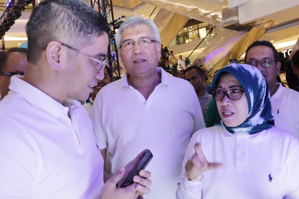 Kepala Eksekutif Pengawas Industri Keuangan Non Bank OJK Riswinandi, Wakil Ketua Dewan Komisioner OJK Nurhaida, Ketua Dewan Audit OJK Ahmad Hidayat, Anggota Dewan Komisioner Lembaga Penjamin Simpanan (LPS) Didik Madiyono dan SVP Retail Deposit Product & Solution Bank Mandiri M. Gumilang (kiri ke kanan) berbincang usai mencoba inovasi pembukaan rekening online di booth Bank Mandiri di Arena FinExpo 2019 di Jakarta, Sabtu 19 Oktober 2019. Bank Mandiri segera meluncurkan layanan pembukaan rekening secara online melalui situs web atau scan QR Code, dimana saat ini masih dalam proses piloting di beberapa kota besar di Indonesia. Dalam layanan ini, bank menggunakan sistem electronic know your face (e-KYC), di mana nasabah dan agen call center Bank Mandiri akan bertatap muka menggunakan video call.