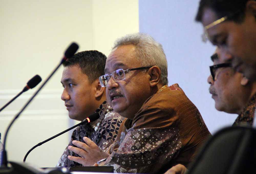 Kabiro Hukum (kiri) & Governance Risk and Complain PT Semen Indonesia (Persero) Tbk (kanan) Angga Adi Perdana, Kuasa Hukum PT Semen Indonesia (Persero) Tbk Mahendra Datta, Kepala Departemen Hukum & Governance Risk & Complain PT Semen Indonesia (Persero) Tbk Sofan Heri dan Corporate Secretary PT Semen Indonesia (Persero) Tbk Agung Wiharto pada saat jumpa media terkait hukum pendirian dan pengoperasian Pabrik Rembang di Jakarta, Kamis 5 Januari 2017. PT Semen Indonesia menjelaskan tentang resume pendapat hukum administrasi dan hukum lingkungan terkait putusan Mahkamah Agung Nomor 99 PK/TUN/2016 & legalitas kegiatan penambangan dan pembangunan serta pengoperasian pabrik semen PT Semen Indonesia (Persero) Tbk di Kabupaten Rembang, Jawa Tengah.