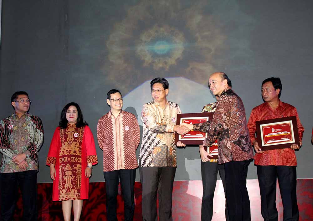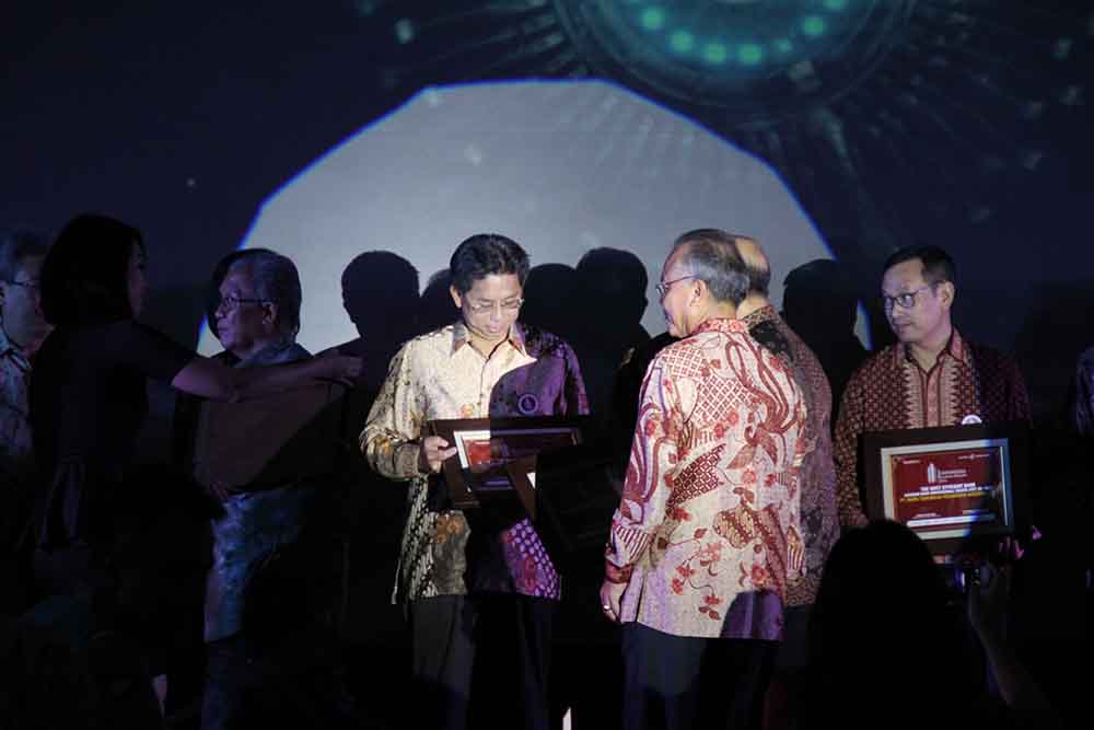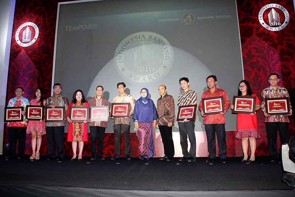 Direktur Utama PT Bank Mega Tbk Kostaman Thayib saat menerima penghargaan Indonesia Banking Award 2016 yang diselenggarakan oleh Tempo Media Group bekerjasama dengan Indonesia Banking School (IBS) di Jakarta,Rabu 7 September 2016.Bank Mega mendapat penghargaan The most Efficient Bank dan The Best Bank in Digital Service untuk Bank beraset >20T<100T.
