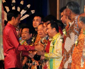 Pilar usaha Sinar Mas di bidang pulp & kertas, Asia Pulp & Paper (APP) melalui PT Indah Kiat Pulp & Paper Tbk (IKPP) raih penghargaan Primaniyarta sebagai eksportir berkinerja untuk ke 5 kalinya. Tampak Presiden Republik Indonesia Joko Widodo memberikan penghargaan kepada Direktur APP Suhendra Wiriadinata di JI Expo, Jakarta Rabu 21 Oktober 2015. Penghargaan ini mengidentifikasikan nilai dan volume ekspor IKPP naik dari tahun ke tahun.(*)