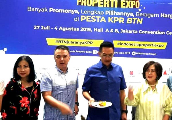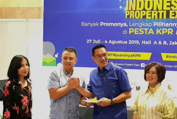 Direktur Bank BTN Oni Febriarto bersama Kepala Kanwil I BTN Dewi Fitrianingrum (kiri), Perwakilan DPP REI Rudi Margono (kedua kanan) dan Kepala Divisi Non Subsidized Lending BTN Suryanti Agustinar (kanan) berfoto bersama pada saat penutupan Indonesia Property Expo 2019 di Jakarta, Minggu (5/8). Dalam ajang IPEX 2019 yang digelar sejak 27 Agustus 2019 sampai dengan 5 Agustus 2019 tersebut berhasil menyerap animo masyarakat untuk membeli rumah atau apartemen yang ditawarkan dengan berbagai gimik selama pameran berlangsung. BTN berhasil mengantongi ijin prinsip untuk pemberian kredit baru dalam pameran tersebut senilai Rp7,2 triliun atau lebih besar dari proyeksi sebelumnya yang ditargetkan sebesar Rp5 triliun. (*)