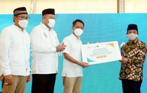 Direktur Eksekutif Yayasan BSMU, Sukoriyanto Saputro, Pembina Yayasan BSMU/Wakil Direktur Utama 2 BSI, Abdullah Firman Wibowo, Ketua Umum Pengurus YBSMU Suhendar, Direktorat Jenderal Bimbingan Masyarakat Islam Kementerian Agama Kamaruddin Amin dan Kasubdit Kelembagaan dan Informasi Zakat dan Wakaf Kementerian Agama RI Andi Yasri (kiri ke kanan) saat acara penyerahan Surat Keputusan (SK) Menteri Agama RI No. 1010 Tahun 2021, tanggal 06 Oktober 2021, tentang pemberian Izin kepada Yayasan BSMU sebagai Lembaga Amil Zakat Skala Nasional di Komplek Parung Hijau, Kemang, Kab. Bogor, pada hari Jumat, 12 November 2021. Yayasan Bangun Sejahtera Mitra Umat (Yayasan BSMU) yang merupakan mitra strategis dari PT Bank Syariah Indonesia Tbk. (BSI) berkomitmen untuk mengoptimalkan potensi penghimpunan dan pengelolaan dana zakat serta donasi sosial secara nasional.