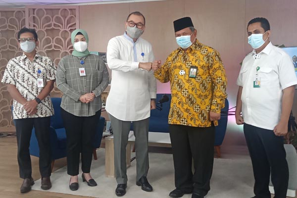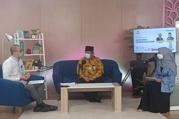 Direktur BCA Syariah Pranata (kiri) menyerahkan mock up zakat nasabah BCA Syariah kepada Direktur Utama Badan Amil Zakat Nasional (BAZNAS) Arifin Purwakananta disela acara bincang virtual tentang zakat yang diadakan BCA Syariah, di Jakarta, Kamis, 29 April 2021. BCA Syariah dan BAZNAS bekerja sama dalam program pemberdayaan ekonomi masyarakat melalui zakat produktif, untuk mendorong para penerima zakat (mustahik) menjadi micropreneur berdaya.