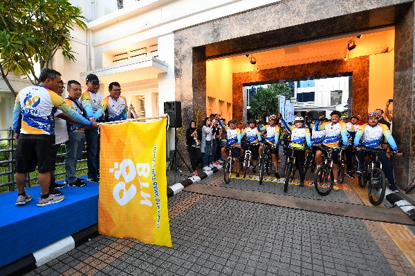 PT Bank Tabungan Negara (Persero) Tbk menggelar fun bike dalam rangka menyambut HUT ke-69 yang jatuh pada tanggal 9 Februari 2019. Direktur Utama Bank BTN Maryono bersama jajaran direksi lainnya memotong tumpeng disela acara fun bike HUT BTN ke-69, di gedung BTN Pusat, Jakarta, Sabtu (9/2). Fun Bike HUT BTN merupakan salah satu rangkaian kegiatan menyambut HUT BTN diikuti oleh lebih dari 1.000 peserta yang terdiri dari pegawai BTN, mitra kerja dan komunitas sepeda menempuh jarak 69 km mengelilingi kota Jakarta. (*)