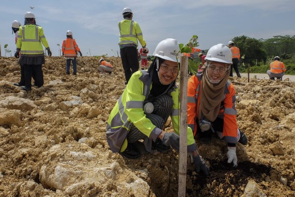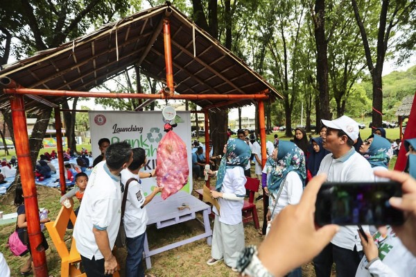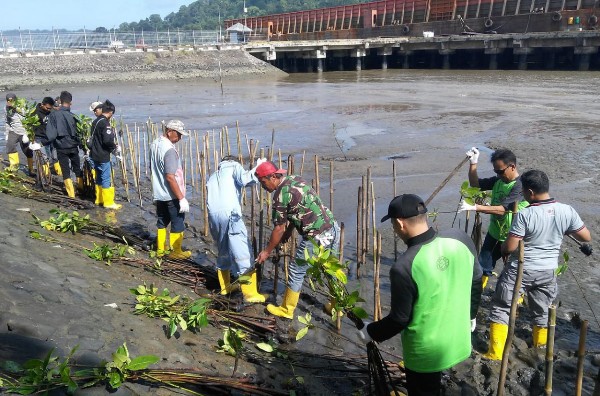 Kepala Departemen Komunikasi Perusahaan Semen Indonesia Sigit Wahono (tengah) meresmikan Pos Pantau Kawasan Konservasi Hutan Bakau di Desa Ujung Pangkah Kulon, Gresik, Jawa Timur, Senin (29/4). Selain itu, dilakukan juga penanaman 700 pohon mangrove dengan metode cluster untuk memperkuat ekosistem perairan Nusakambangan, Cilacap, Jawa Tengah. (*)