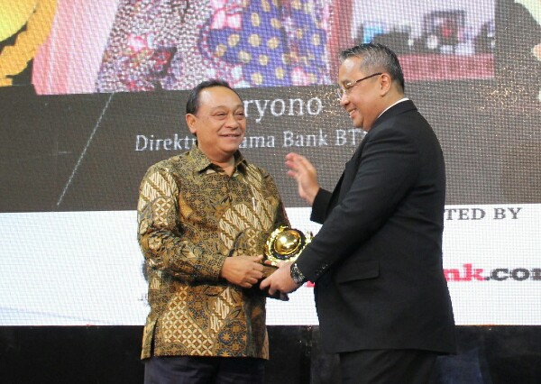 Direktur Utama PT Bank Tabungan Negara (Persero) Tbk. Maryono menerima penghargaan dari Menteri Desa, Pembangunan Daerah Tertinggal, dan Transmigrasi Eko Putro Sandjojo di Jakarta, Kamis (9/11). Bank BTN berhasil meraih penghargaan sebagai Bank Berkinerja Sangat Baik atas kinerja perseroan pada tahun lalu. Selain itu, Maryono pun menyabet Most Favorite Leadership atas kiprahnya memimpin Bank BTN sebagai bank dengan pangsa KPR terbesar dan di dunia properti. Bank BTN berkomitmen untuk melanjutkan kinerja bisnis yang positif dan berkelanjutan serta mengutamakan asas kehati-hatian. (*)