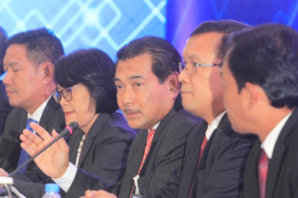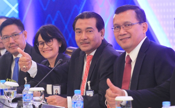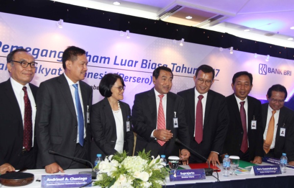 (Dari kiri ke kanan) Direktur BRI Kuswiyoto, Direktur Susi Liestiowaty, Direktur Utama Suprajarto, Direktur Haru Koesmahargyo dan Direktur Sis Apik berbincang seusai acara rapat umum pemegang saham luar biasa di Jakarta, Rabu (18/10). Rapat Umum Pemegang Saham Luar Biasa (RUPSLB) PT Bank Rakyat Indonesia (Persero) Tbk (BBRI) baru saja berlangsung. Salah satu hasil keputusan rapat tersebut adalah disetujuinya perubahan susunan kepengurusan di tubuh BRI. (*)