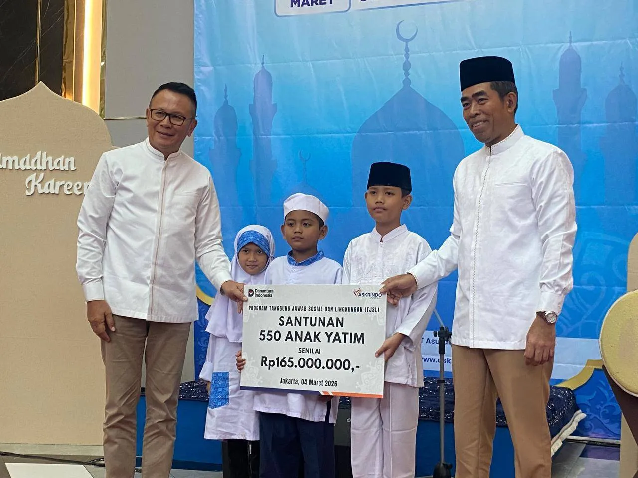 Dalam rangkaian kegiatan tersebut, Askrindo menyalurkan santunan kepada 550 anak yatim dan 13 yayasan panti asuhan di berbagai kota di Indonesia.