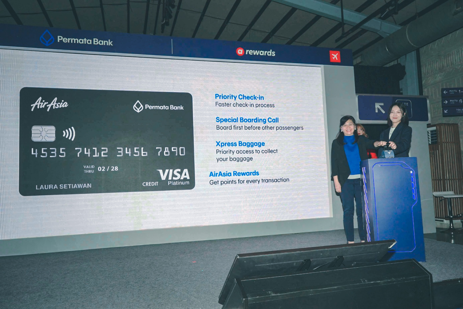 Djumariah Tenteram Direktur Consumer Banking Permata Bank bersama Nicole Tan, Chief Business Officer AirAsia Rewards meluncurkan kembali AirAsia Card di Jakarta. Kamis 27 Februari 2025/Foto : Zaenal Abdurrani