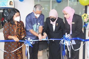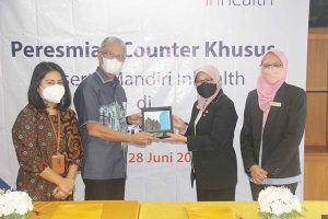 Direktur Operasional Mandiri Inhealth Oni Jauhari (kiri) bersama dengan Direktur PT Khasanah Putra Jakarta Medika Nor Azlina Jemain pada acara peresmian konter khusus Mandiri Inhealth di RS Medika, BSD, Selasa, 28 juni 2022. Konter ini dapat berfungsi sebagai sumber informasi, penanganan keluhan peserta, pengendalian layanan terpadu serta meminimalisir waktu tunggu. Konter Mandiri Inhealth dapat diakses peserta Mandiri Inhealth Indemnity dan Managed Care mulai dari plan Silver hingga Diamond.