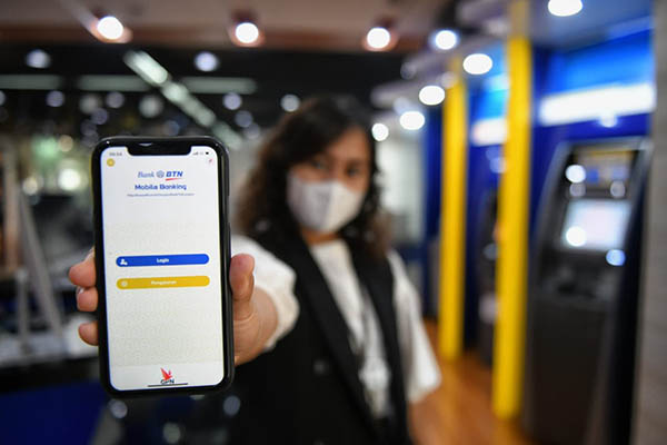 Seorang nasabah PT Bank Tabungan Negara (Persero) Tbk. tengah mengakses layanan mobile banking Bank BTN di Jakarta, Senin, 19 Juli 2021. Dalam rangka mendukung Pemerintah menekan laju penularan Covid-19 dengan Pemberlakuan Pembatasan Kegiatan Masyarakat (PPKM) yang masih terus diterapkan, Bank BTN mengoptimalkan layanan digital banking, seperti mobile banking, internet banking serta ATM. Bank BTN juga menambah fitur Cardless Withdrawal, dimana nasabah dapat melakukan transaksi tarik tunai tanpa kartu di ATM, serta QRIS, fitur yang memudahkan nasabah bertransaksi dengan memindai QR Code melalui aplikasi mobile banking BTN. Jumlah transaksi mobile banking Bank BTN tercatat melonjak hingga 52% yoy menjadi 65,62 juta transaksi pada bulan Juni 2021 atau naik dari 43,14 juta transaksi pada Juni 2020.