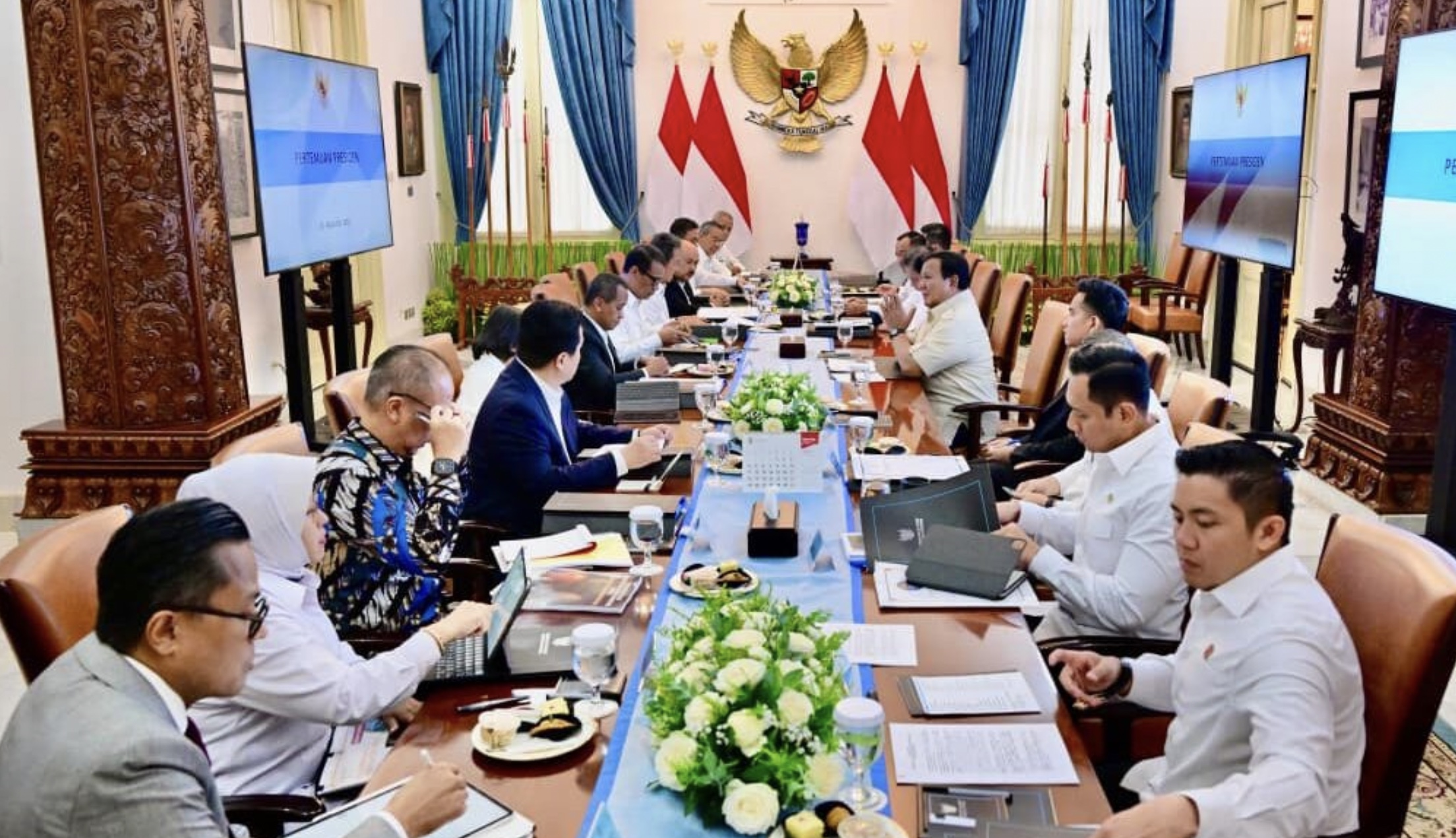 Presiden Prabowo Subianto memimpin rapat terbatas mengenai perekonomian nasional bersama jajaran menteri Kabinet Merah Putih di Istana Merdeka, Jakarta, pada Senin, 25 Agustus 2025. Foto: BPMI Setpres