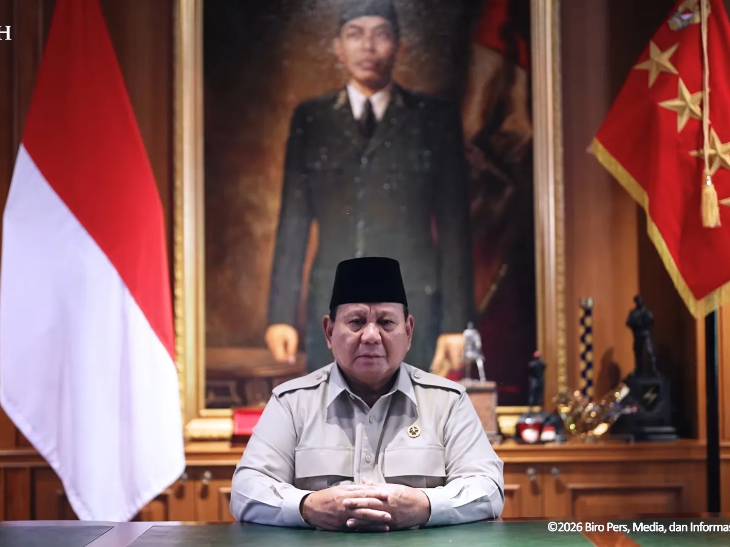 Presiden Prabowo Subianto memberikan ucapan selamat Idul Fitri 1447 Hijriah kepada seluruh masyarakat Indonesia. (Tangkapan layar YouTube @SekretariatPresiden: Julian)
