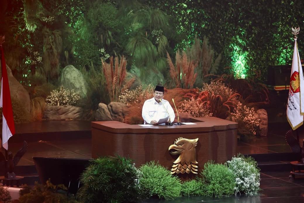 “Kita seluas Eropa, Eropa 27 negera. Dia punya 27 menteri keuangan, 27 menteri dalam negeri, 27 menteri luar negeri, 27 panglima. ‘Kabinet gemuk’, nggak peduli saya disebut apa, yang penting hasilnya,” tegas Prabowo sembari disambut tepuk tangan para kader partai.