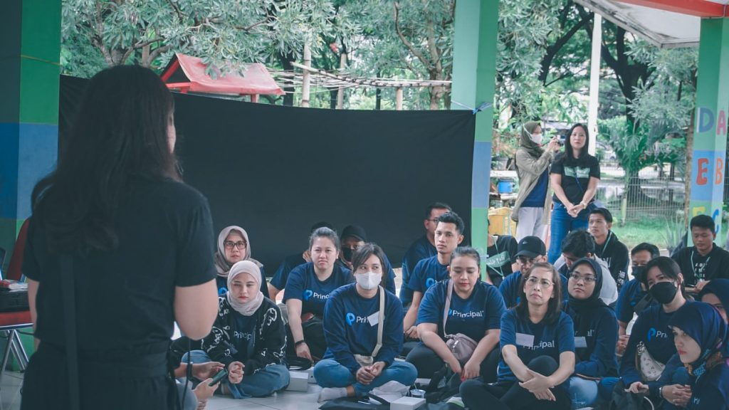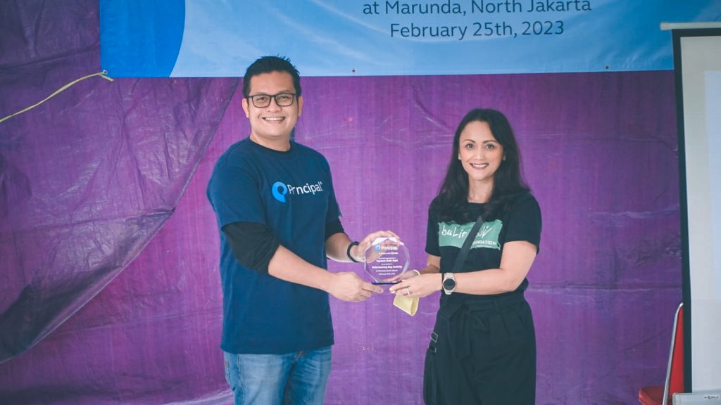 Karyawan Principal Indonesia tengah memberikan pelatihan perencanaan keuangan bagi komunitas Rusunawa Marunda, Jakarta Utara.Direktur Principal Indonesia Kemal Fajri Mohsin (kiri) memberikan cendera mata kepada Founder Yayasan Bulir Padi Tia Sutresna disela acara Volunteering Day Activity dengan melakukan edukasi dan pelatihan perencanaan keuangan bagi anak-anak muda dan komunitas di Rusunawa Marunda, Cilincing, Jakarta Utara, Sabtu 25 Februari 2023.