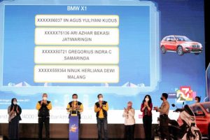 Direktur IT Bank Mandiri Timothy Utama, Direktur Hubungan Kelembagaan Bank Mandiri Rohan Hafas dan Direktur Jaringan & Retail Banking Bank Mandiri Aquarius Rudianto (kiri ke kanan) berbincang bersama di sela-sela pengundian program Livin’ to The Max di Jakarta, Rabu, 13 Oktober 2021. PT Bank Mandiri (Persero) Tbk. merealisasikan program Livin’ to The Max dengan hadiah berupa 100 unit BMW X1, 1.000 unit motor Vespa Sprint dan Yamaha NMax yang diundi setiap pekan sejak 2 Oktober-31 Desember 2021. Program yang menjadi bagian dari peringatan HUT Bank Mandiri ke-23 ini diharapkan dapat meningkatkan transaksi nasabah pada Super App Livin’ by Mandiri.