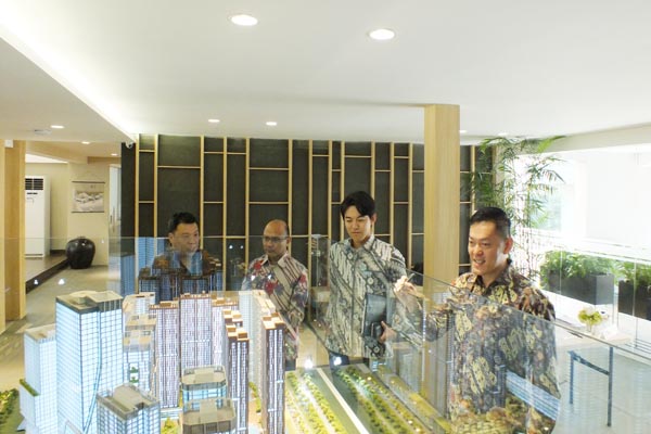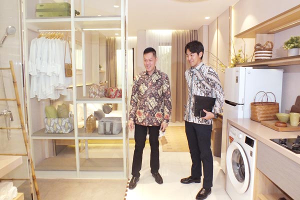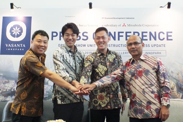 President Commisioner PT Sirius Surya Sentosa Agnus Suryadi, Marketing Director PT Mitsubishi Corporation Indonesia Kenji Shimazaki, Sales & Marketing Director PT Sirius Surya Sentosa Ming Liang dan Direktur Marketing Gedung 1 PT PP Construction & Investment Aprinauza (kiri ke kanan) disela acara peresmian Show Unit Tower Chihana Apartemen Vasanta Innopark di Kawasan Industri MM2100, Cikarang Barat, Jawa Barat, Selasa, 22 Oktober 2019. Vasanta Innopark merupakan proyek superblok yang dikenal dengan konsep “The Genuine Integrated Japanese Town in Eastern Corridor”.