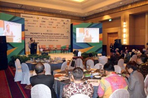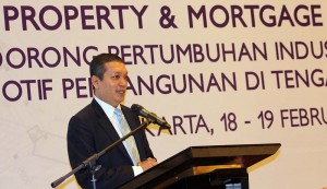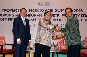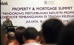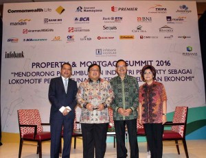 Menteri Keuangan Bambang Brodjonegoro (kedua kiri) didampingi Ketua Perbanas Sigit Pramono (kedua kanan),Pengamat Ekonomi Aviliani dan Pemred Majalah Infobank Eko B.Supriyanto (kiri) berfoto bersama usai memberikan keynote speech pada Forum Property & Mortgage Summit 2016 di Jakarta,Kamis 18 Februari 2016.Majalah Infobank bekerjasama dengan Perbanas dalam forum Property & Mortgage Summit 2016 mengambil tema “Mendorong Pertumbuhan Industri Property Sebagai Lokomotif Pembangunan Di Tengah Kelesuan Ekonomi” ini dihadiri oleh pelaku industri property,perbankan dan asuransi.(Budi Urtadi)