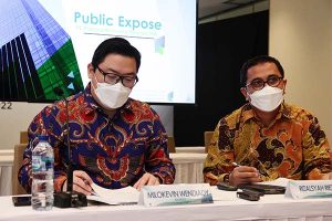 Direktur Bisnis PT Radana Bhaskara Finance Tbk Milokevin Wendiady (kiri) dan Direktur Keuangan Radana Finance Rizalsyah Riezky tengah memberikan keterangan dalam acara Press Conference Public Expose Kuartal 1 2022 Radana Finance di Jakarta, Kamis, 23 Juni 2022. Radana Finance sukses membukukan lonjakan kinerja positif di kuartal pertama 2022. Tercatat, pendapatan perusahaan meningkat 52% dari Rp 32 miliar di Q1 2021 menjadi Rp 48 miliar di Q1 tahun 2022. Demikian pula dengan laba bersih setelah pajak yang meningkat 24% year on year (yoy) mencapai Rp 9 miliar di Q1 2022.