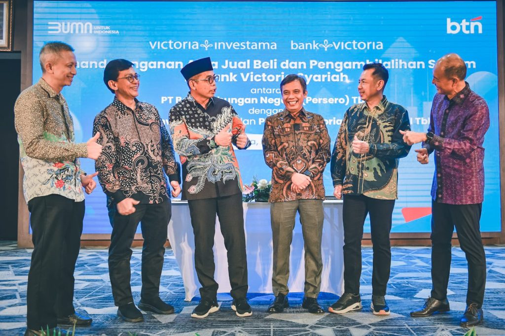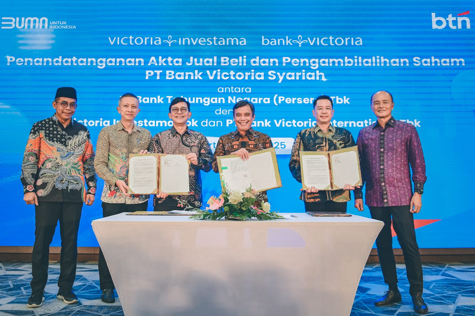 BTN melakukan penandatanganan Akta Jual Beli dan Pengambilalihan Saham PT Bank Victoria Syariah (BVIS), di Jakarta Kamis, 5 Juni 2025/Foto : Erman Subekti