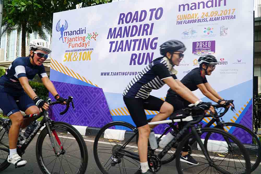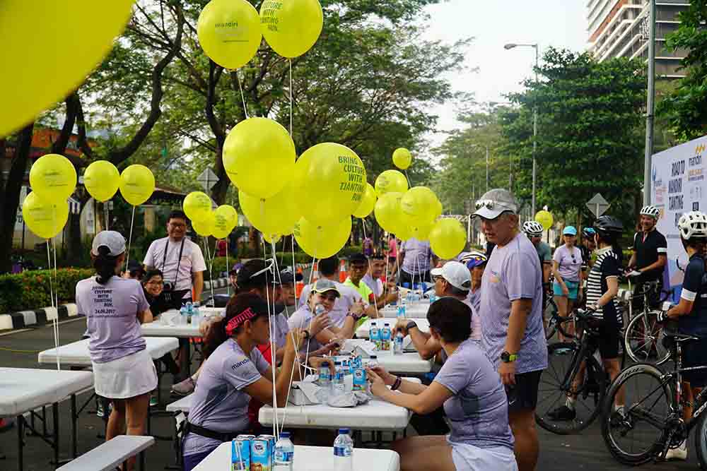 (Kiri-kanan) , TNB & Partners Benny Bernarto , Pengurus Yayasan Tjanting Erna Laksmana, Direktur BNI Life Intan Abdams, Managing Partner Hadiputranto, Hadinoto & Partners Timur Sukirno dan Pengurus Yayasan Tjanting Koko Arto usai Road to Mandiri Tjanting Run di Kawasan car free day SCBD di Jakarta, Minggu 23 Juli 2017. Kegiatan ini merupakan bagian dari acara Tjanting Fun Day yang akan berlangsung pada 21 hingga 22 September 2017, yang kemudian dilanjutkan dengan lomba lari Mandiri Tjanting Run di Alam Sutra, tangerang.