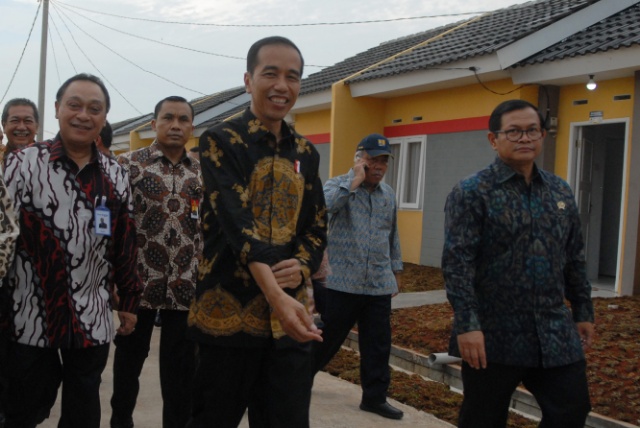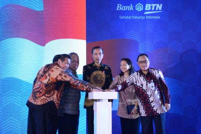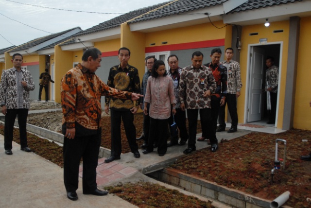 Presiden Joko Widodo didampingi Menteri Pekerjaan Umum dan Perumahan Rakyat Basuki Hadimuljono, Menteri BUMN Rini M. Soemarno, Gubernur Jawa Barat Ahmad Heryawan, Bupati Bekasi Neneng Hasanah Yasin, Direktur Utama PT Bank Tabungan Negara (Persero) Tbk. Maryono dan Menteri Sekretaris Kabinet Pramono Anung dmeresmikan proyek perumahan tapak murah sekitar 9.000 unit bagi masyarakat berpenghasilan rendah di Cikarang, Bekasi, Kamis (4/5). Dalam rangka menyukseskan Program Sejuta Rumah untuk memenuhi kebutuhan rumah rakyat, Bank BTN telah menyalurkan kredit perumahan senilai total Rp144,37 triliun terhitung sejak program ini diluncurkan hingga Maret 2017.(Budi Urtadi)