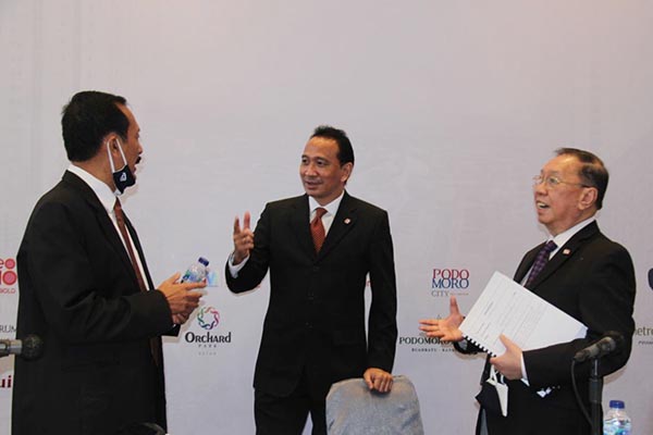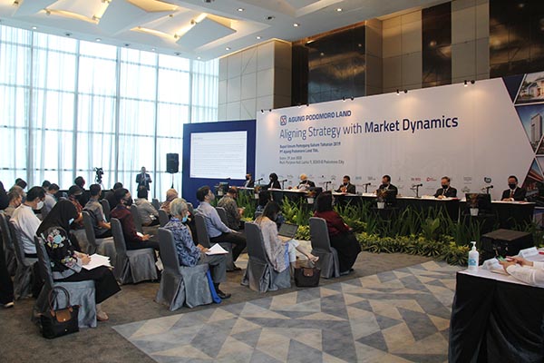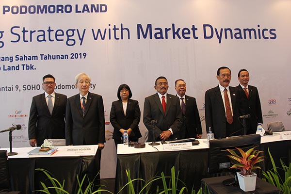 Direktur PT Agung Podomoro Land Tbk (APLN) Noer Indradjaja, Komisaris Utama dan Komisaris Independen, Sofian Effendi, Direktur Anak Mas Agung Wirajaya dan Direktur Cesar Manikan dela Cruz (kiri ke kanan) berbincang disela acara Rapat Umum Pemegang Saham Tahunan 2018 (RUPS Tahunan) di Multi Purpose Hall SOHO @Podomoro City Jakarta, Senin 29 Juni 2020. Letjen TNI (Purn) Sofian Effendi selaku Komisaris Utama/Komisaris Independen APLN bertindak sebagai pimpinan Rapat. RUPST menyetujui seluruh usulan keputusan yang disampaikan kepada pemegang saham, termasuk susunan Dewan Komisaris and Direksi yang baru.