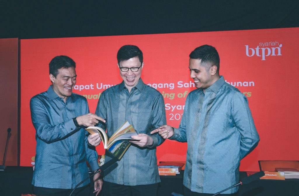 Jajaran Komisaris dan Direksi Bank BTPN Syariah hadir saat Rapat Umum Pemegang Saham Tahunan (RUPST), di Jakarta, Rabu 20 Maret 2024.Direktur Utama Bank BTPN Syariah Bapak Hadi Wibowo (tengah), Direktur Kepatuhan dan Manajemen Risiko/Corporate Secretary Bapak Arief Ismail (kiri), Direktur Keuangan Bapak Fachmy Achmad (kanan) berbincang usai Rapat Umum Pemegang Saham Tahunan (RUPST), di Jakarta, Rabu 20 Maret 2024.