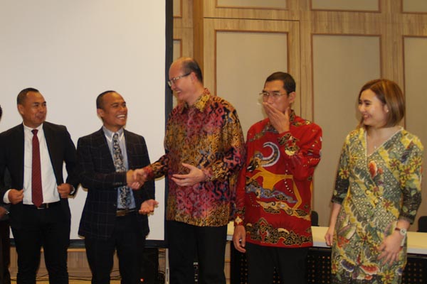 CEO PT Sumber Energi Alam Mineral (SEAM) Group Asep Sulaeman Sabanda (kiri) dan CEO ASCORT ASIA Group Anthony Soewandy (kedua kiri) tengah berbincang bersama manajemen lainnya usai pertemuan yang diadakan di Jakarta, Selasa 3 September 2019. Pertemuan tersebut terkait perseroan yang berencana melakukan penawaran saham perdana ke publik (Initial Public Offering/IPO) atas saham SEMI di tahun 2020.