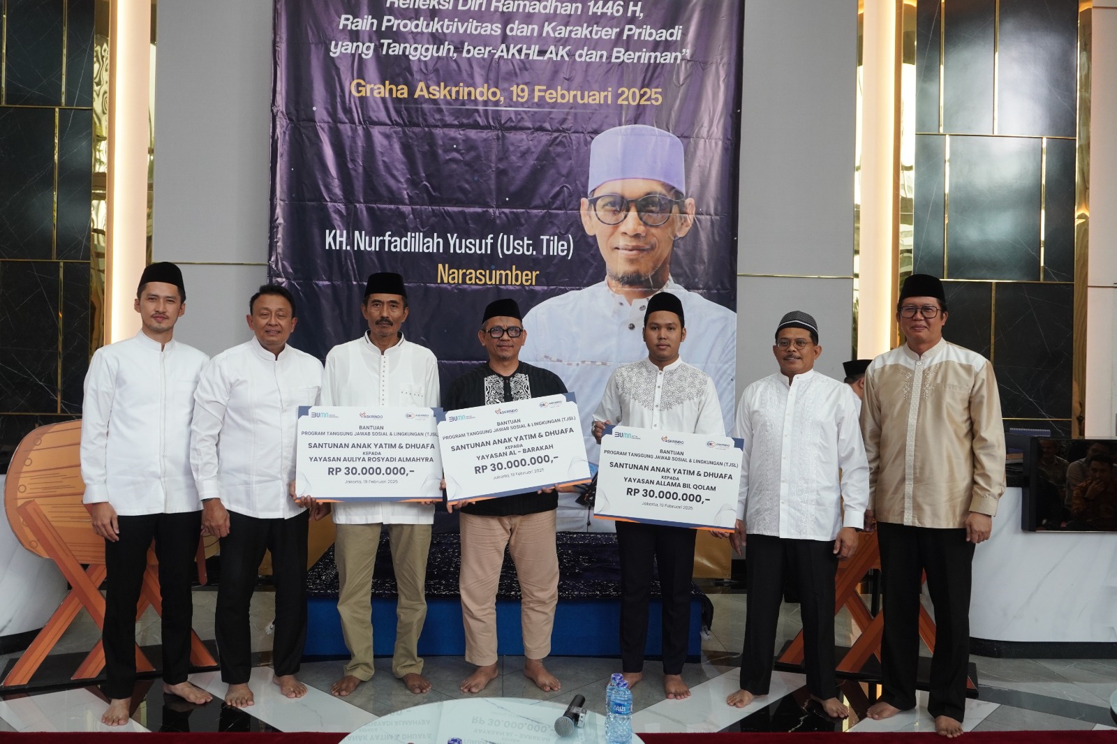 Pada kesempatan yang sama, Direktur Kepatuhan, SDM, dan MR Askrindo, R. Mahelan Prabantarikso, menyerahkan santunan sebesar Rp90 juta kepada tiga yayasan dan panti asuhan di Jakarta, yaitu Yayasan Auliya Rosyadi Almahyra, Yayasan AL-Barakah, dan Yayasan Allama Bil Qolam.
