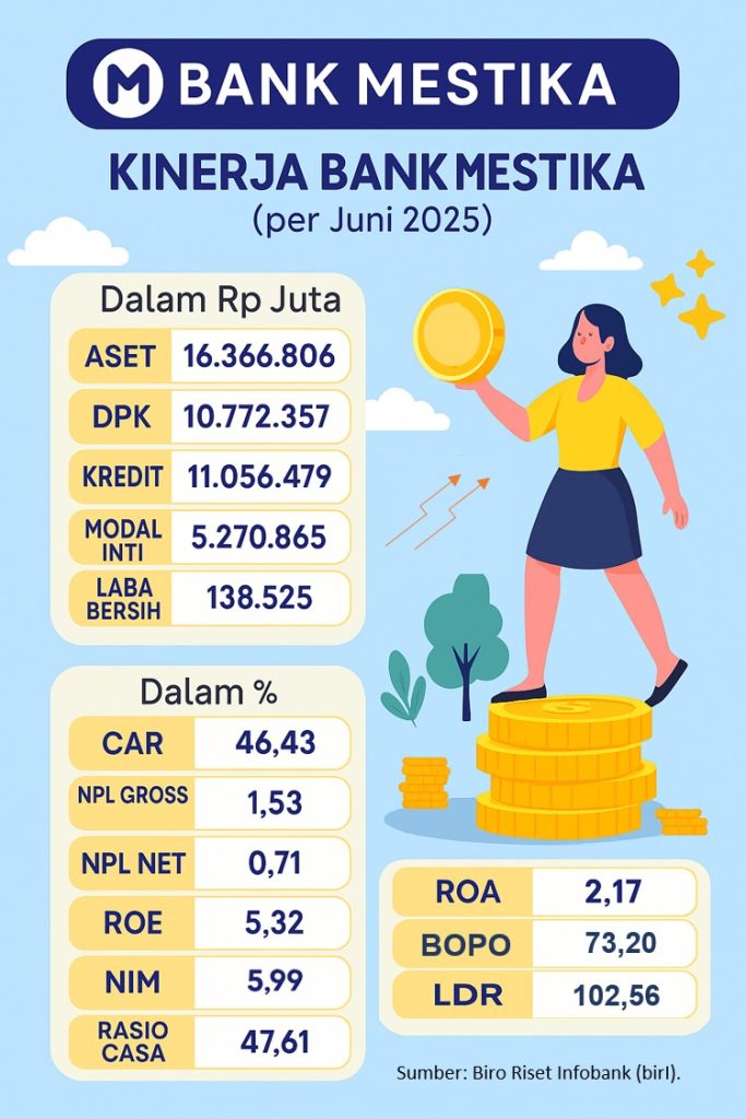 Lebih penting lagi, Bank Mestika mampu menjaga kualitas kreditnya dengan baik. Rasio kredit bermasalah (NPL) gross tercatat 1,53 persen dan NPL net 0,71 persen, jauh di bawah ambang batas aman 5 persen yang ditetapkan oleh regulator.