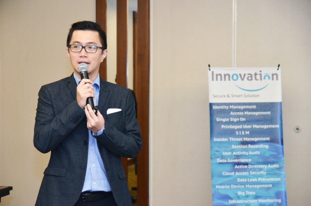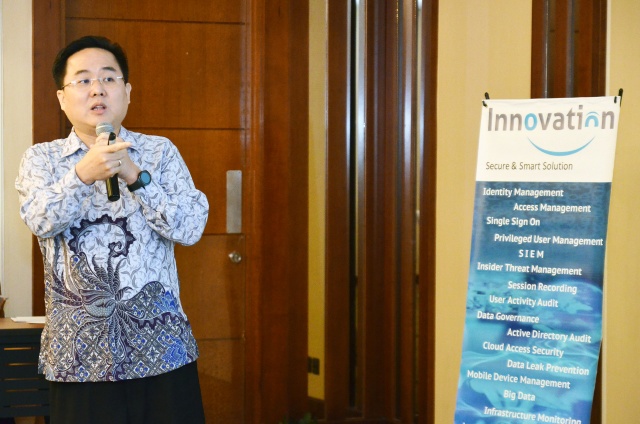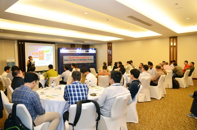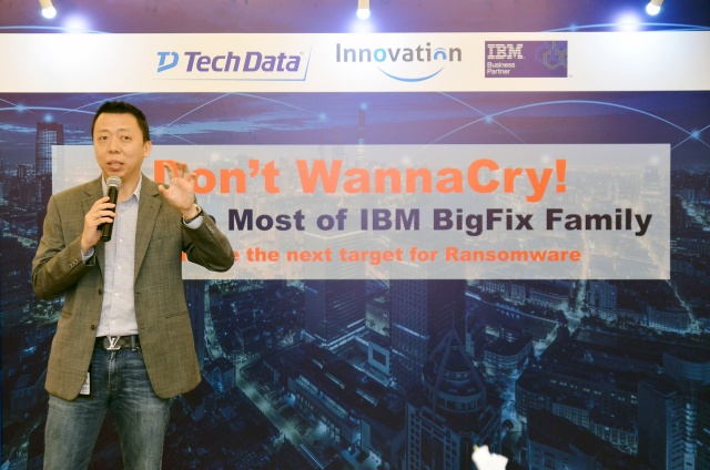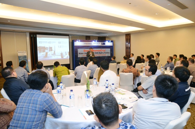 (Kiri-kanan) Product Manager IBM Software, PT. Tech Data Advanced Solutions Indonesia Arrent Ong, Chief Technology Officer, Global Innovation Technology Haley Swarnapati, Chief Executive Officer, Global Innovation Technology, Maliki Gozali, Country Manager IBM Security, IBM Indonesia, Dhany Sulistyo dalam acara Seminar PT Tech Data Advanced Solutions Indonesia di Jakarta,Selasa 8 Agustus 2017.Seminar mengenai pentingnya menjaga keamanan data dan perangkat pengguna perusahaan. Hampir semua perusahaan di segala industri merasakan dampaknya kehilangan data karena ransomware yang tidak bisa ditangani atau diwaspadai terlebih dahulu. Para analis keamanan memberikan solusi untuk mendeteksi serta menjaga data di level enterprise. Oleh karena itu, IBM BigFix hadir untuk membantu para analis dalam memberikan keamanan di dunia TI enterprise.