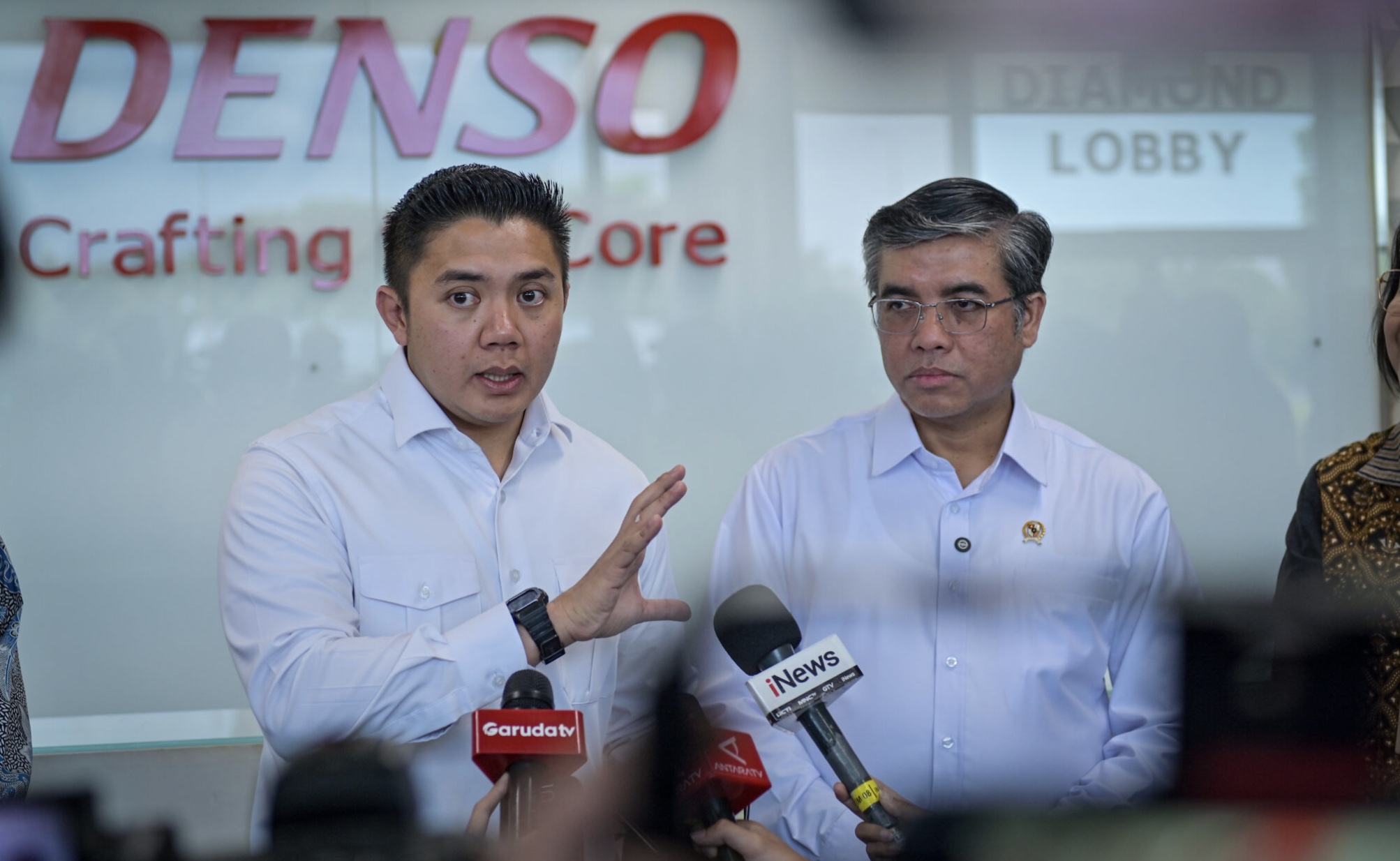 - Seskab Teddy Indra Wijaya bersama Menaker Yassierli meninjau pelaksanaan Program Magang Nasional Batch 1 di PT Denso Indonesia, Bekasi.