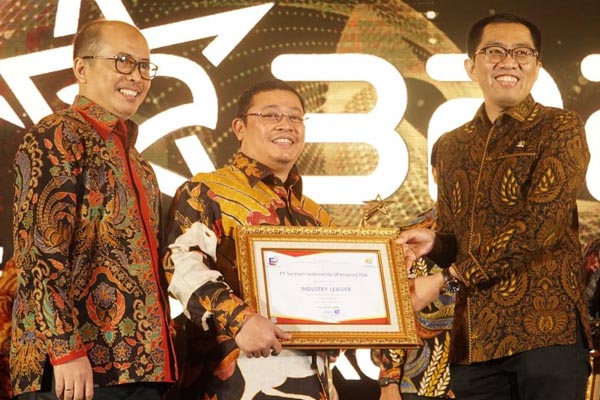 Direktur Strategi Bisnis dan Pengembangan Usaha Semen Indonesia Grup (SIG), Fadjar Judisiawan (kedua dari kiri) menerima peghargaan dari Ketua Komisi VI DPR RI Faisol Riza (kedua dari kanan) disaksikan Pemimpin Redaksi Infobank Eko B Supriyanto (kanan) dalam ajang BUMN Performance Excellence Awards (BPEA) 2020, di Jakarta, Rabu 4 Maret 2020. SIG memperoleh predikat Industry Leader (IL) atas pencapaian tingkat Kinerja Excellence (Excellence Level) yang mengacu pada Kriteria Penilaian Kinerja Unggul (KPKU) yang telah ditetapkan Kementerian BUMN. SIG termasuk dalam 9 BUMN yang meraih level Industry Leader dari 100 BUMN yang telah diases oleh tim asesor KPKU dan telah mengikuti seluruh proses pendampingan asesmen oleh Forum Ekselen BUMN (FEB).