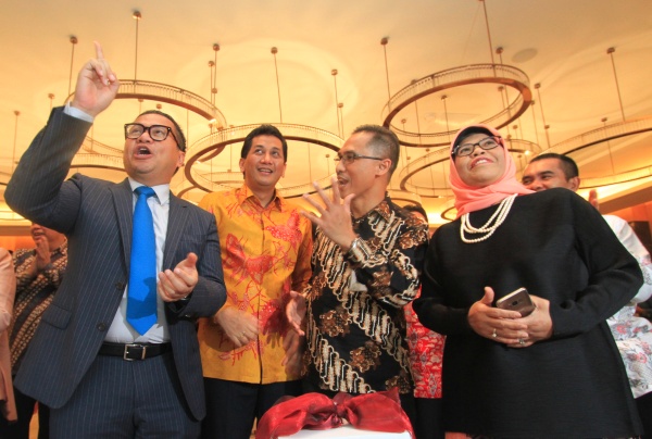 (Dari kiri) Direktur Utama Bank Mandiri Kartika Wirjoatmodjo, Direktur Keuangan Kimia Farma. I. G.N Suharta Wijaya, Direktur Utama Mandiri Inhealth Iwan Pasila dan Direktur Utama Asuransi Jasindo Solihah hadir pada peresmian Logo Signage Mandiri Inhealth di Jakarta, Senin (30/10). Acara ini juga menjadi ajang “temu kangen” dengan jajaran Direksi & Komisaris Mandiri Inhealth periode sebelumnya tahun 2008-2015. (*)