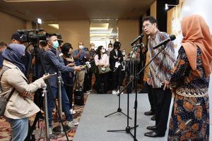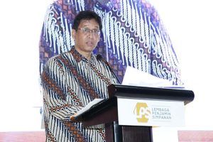 Ketua Dewan Komisioner Lembaga Penjamin Simpanan (LPS) Purbaya Yudhi Sadewa (tengah) didampingi oleh Kepala Eksekutif LPS Lana Soelistianingsih (kanan) dan Anggota Dewan Komisioner LPS Didik Madiyono, berbincang usai acara Silaturahmi LPS dan Perbankan, di Jakarta, Selasa, 12 April 2022. Ketua Dewan Komisioner Lembaga Penjamin Simpanan (LPS) Purbaya Yudhi Sadewa, menekankan pentingnya transparansi perbankan kepada nasabah, terutama pada saat menawarkan produk simpanan khususnya apabila tingkat bunga simpanan melebihi Tingkat Bunga Penjaminan (TBP) LPS.