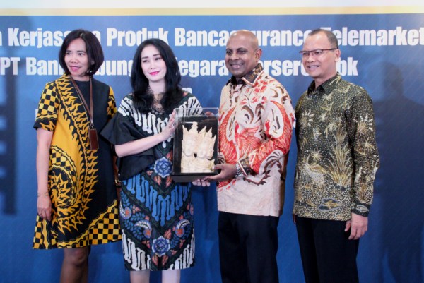 Solusi Asuransi Perbankan – Kepala Divisi Wealth Management Bank BTN, Sri Redjeki (kiri), Direktur Consumer Banking Bank BTN, Handayani (dua dari kiri) bersama Presiden Direktur Sinarmas MSIG Life, Premraj Thuraisingam (dua dari kanan) dan Direktur Sinarmas MSIG Life, Hamid Hamzah (kanan), berbincang bersama usai mengikuti acara “Peresmian Kerja Sama Produk Bancassurance Telemarketing antara Bank Tabungan Negara (BTN) dan Sinarmas MSIG Life” di Menara Bank BTN, Jakarta (26/9). Kerja sama Bank BTN dan Sinarmas MSIG Life mempermudah nasabah memperoleh informasi serta pilihan produk proteksi yang lebih luas sesuai dengan kebutuhan diri maupun keluarga. (*)