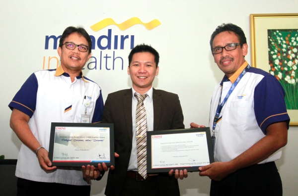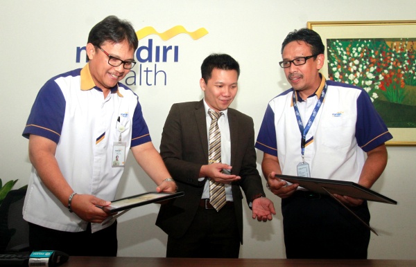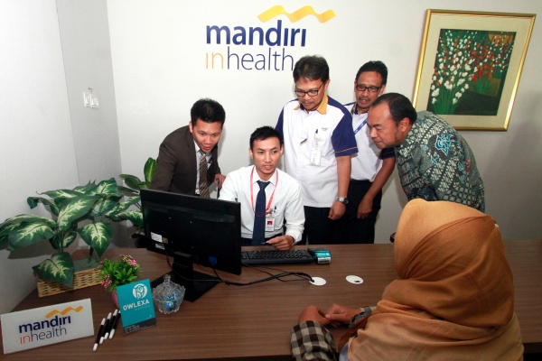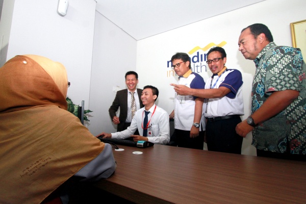 Direktur Mandiri Inhealth Eddy Alfian (tengah) bersama Direktur Utama Omni Hospitals Cikarang Dr. Ridwan T. Lembong, MM, MMRS, MBA (kiri) serta Kepala Kantor Operasional Mandiri Inhealth Jakarta Tunggul Yogi Hernowo (kedua kanan) dan dr Iskandar Ketua Asosiasi Rumah Sakit Indonesia (ARSI) Cikarang Karawang & Purwakarta (kanan) meresmikan konter khusus peserta Mandiri Inhealth yang disediakan oleh Omni Hospitals Cikarang, Selasa (12/12). Lebih dari 500 orang peserta Mandiri Inhealth rata-rata perbulan mengakses pengobatan rawat jalan di Omni Hospitals Cikarang. Ini merupakan konter ke-17 hasil sinergi Mandiri Inhealth dengan Rumah Sakit Rekanan. (*)