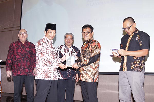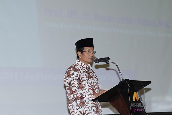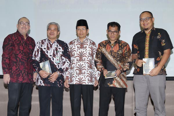 Direktur Utama Bank Mega Syariah Yuwono Waluyo, Kabid Umrah & Haji Khusus Kanwil Kemenag Tabrani, Komisaris Bank Mega Syariah Nasaruddin Umar, Direktur Bina Umrah & Haji Khusus Kemenag RI, M. Arfi Hatim dan Direktur Asuransi Takaful Umum, Tatang Nurhidayat, (kiri ke kanan) berbincang disela acara sosialisasi pembayaran umrah melalui SISKOPATUH di Jakarta, Kamis, 3 Oktober 2019. Bank Mega Syariah bekerja sama dengan Direktorat Bina Umrah dan Haji Khusus Kementerian Agama Republik Indonesia, mengadakan sosialisasi Sistem Komputerisasi Pengelolaan Terpadu Umrah dan Haji Khusus (SISKOPATUH). Kagiatan yang turut didukung oleh Asuransi Takaful Umum ini dihadiri sekitar 100 Penyelenggara Perjalanan Ibadah Umrah (PPIU) se-Jabodetabek dan Karawang.
