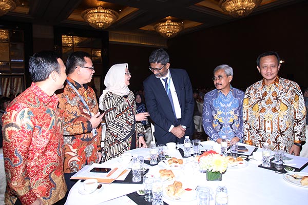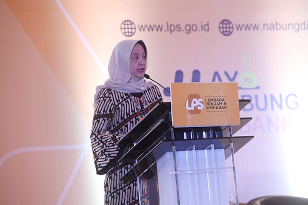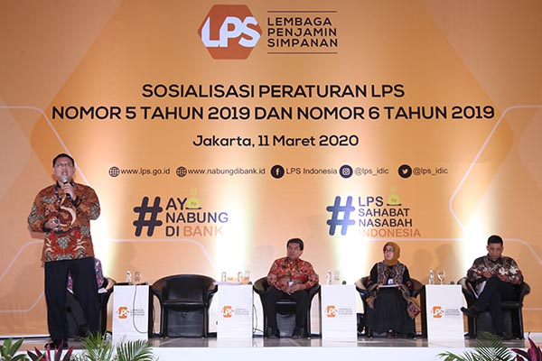 Kepala Eksekutif Lembaga Penjamin Simpanan (LPS) Lana Soelistianingsih (ketiga kiri) didampingi Plt. Kepala Kantor Manajemen Strategis dan Pengelolaan Kebijakan LPS Suwandi (kedua kiri) berfoto bersama Presiden Direktur PT Bank SBI Indonesia Pranab Ranjan Das (ketiga kanan), Direktur Utama PT BPD Kalimantan Tengah Yayah Diasmono (kedua kanan), Direktur Utama BPD Bengkulu Agus Salim (kanan) dan Direktur Utama PT Bank Syariah Bukopin Dery Januar saat acara sosialisasi Peraturan LPS (PLPS) di Jakarta, Rabu, 11 Maret 2020. LPS melakukan sosialisasi Peraturan LPS Nomor 5 Tahun 2019 tentang Pelaporan Data Penjaminan Simpanan Berbasis Nasabah Bank Umum atau PLPS Single Customer View (SCV) yang diharapkan dapat meningkatkan layanan klaim penjaminan LPS jika bank dilikuidasi, serta mensosialisasikan PLPS Nomor 6 tahun 2019 tentang Laporan Bank Umum Peserta Penjaminan Simpanan.